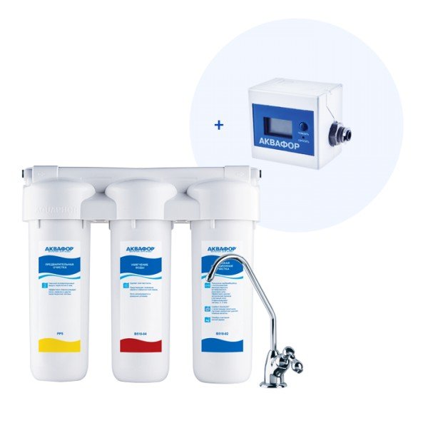 Обратноосмотические фильтры используются для абсолютной защиты от накипи, т.к. полностью устраняют соли жесткости из воды.нетЧисло ступеней очисткиКартриджи последовательно очищают воду и от видимых примесей, и от растворенных. Первый картридж задерживает более крупные частицы, а каждый последующий - более мелкие. Чем больше ступеней - тем лучше фильтр очистит воду: поймает более мелкие видимые частицы ржавчины, песка и ила, успеет захватить из воды максимум растворенных примесей - хлора, нитратов, тяжелых металлов и других.3МинерализацияПроисходит после финишной очистки воды. Необходима прежде всего в фильтре обратного осмоса, поскольку такой фильтр полностью устраняет из воды все примеси, в том числе минералы. Минералы добавляются в оптимальной концентрации - для пользы и привычного вкуса воды.нетПостфильтрацияФинальный этап очистки воды: картриджи постфильтрации удаляют самые мелкие механические частицы и кондиционируют воду, придавая ей более приятный вкус.нетНакопительная емкостьОбычно нужна в фильтрах обратного осмоса. Глубокая фильтрация требует времени. Чтобы Вам не приходилось ждать, пока вода наберется в чайник или кастрюлю, почти во всех моделях используется накопительный бак для чистой воды или другая емкость. В стандартном фильтре обратного осмоса под мойку воды в баке достаточно для семьи из 5-6 человек.нетФильтрующий модуль в комплектедаОтдельный крандаДавление в водопроводе не более, атмМаксимальное давление воды на входе в систему, при котором возможна стабильная работа фильтра.6,5Ширина, смОбратите внимание на габариты фильтра, и измерьте, сколько свободного пространства в предполагаемом месте установки.33,2Глубина, смОбратите внимание на габариты фильтра, и измерьте, сколько свободного пространства в предполагаемом месте установки.10,5Защита корпуса от гидроударовдаИсходная водаЖесткая вода – вода с избытком минеральных солей. От нее появляется накипь в чайнике, известковый налет на сантехнике и разводы на посуде. Мягкая вода – та, в которой мало минеральных солей. Нет накипи в чайнике и разводов на посуде. Фильтры для мутной воды и фильтры от ржавчины, как правило, имеют несколько стадий очистки и дополнительный полипропиленовый картридж. Он задерживает механические частицы ила, песка и ржавчины и защищает картриджи более глубокой очистки.жёсткаяУстраняет мутностьМутность водопроводной воды может говорить о том, что в ней много мелких механических частиц. Важно, чтобы в фильтре был установлен дополнительные картридж механической предфильтрации (полипропиленовый) - он продлит жизнь остальным картриджам более тонкой очистки.даУстраняет ржавчину, бурый осадокЛюбой фильтр под мойку удалит из воды крупные и мелкие частицы ржавчины. Некоторые фильтры имеют повышенный ресурс по железу: они дольше служат в такой воде, поскольку лучше подходят для удаления из воды железа и механических частиц ржавчины.нетЗащита от бактерийВсе проточные фильтры в той или иной степени защищают от бактерий. Например, добавление серебра препятствует их размножению. Это стандартная степень защиты. Если в семье есть дети, пожилые люди или аллергики, воду рекомендуется обеззараживать, то есть полностью удалять микроорганизмы. Повышенную защиту от бактерий дают фильтры с половолоконной мембраной. Это пучок тру