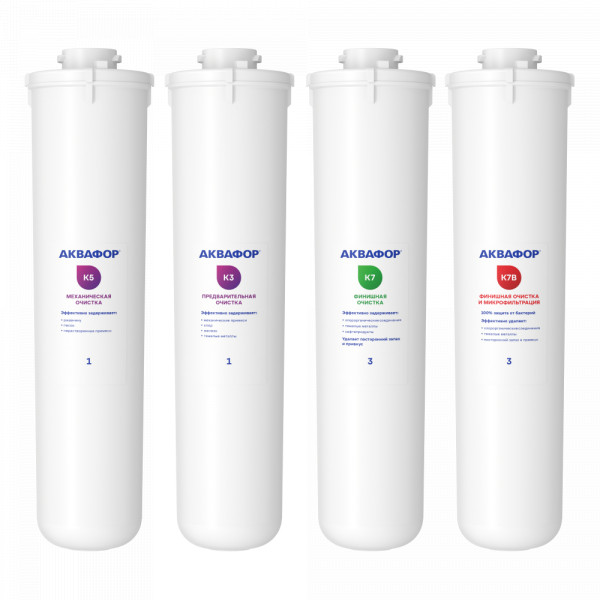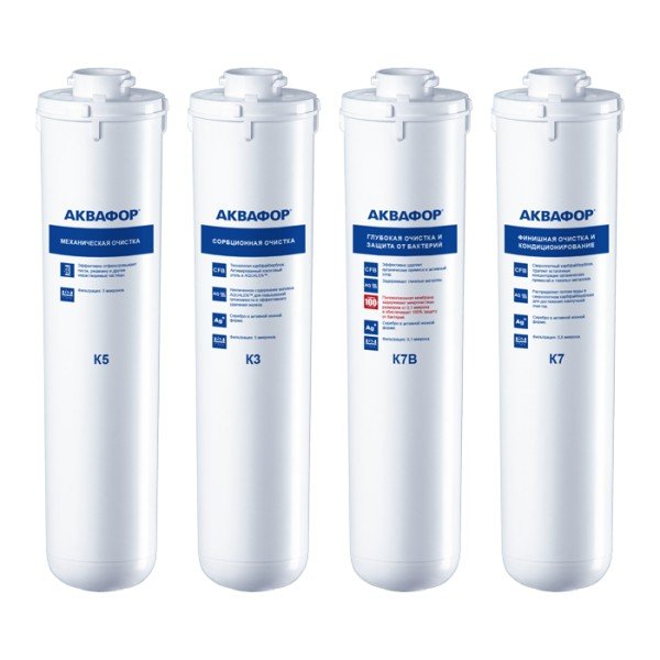Комплект сменных модулей глубокой очистки. Оптимален для мягкой воды. В условиях жесткой воды он полностью выполняет функцию глубокой очистки от вредных примесей, однако не снижает минерализацию. Поэтому, если при кипячении на нагревательных элементах образуется белый налет, рекомендуем рассмотреть специализированный комплект с умягчающим модулем для глубокой очистки воды.