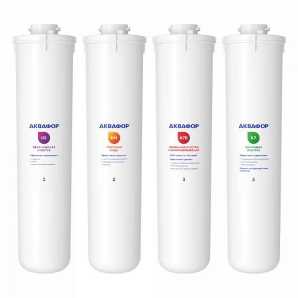 Комплект сменных модулей глубокой очистки и умягчения воды низкой и средней жесткости. Эффективно снижает появление белого налета, модуль с ионообменной смолой подлежит регенерации. В зависимости от жесткости исходной воды, регенерацию потребуется проводить в срок до 3х месяцев.