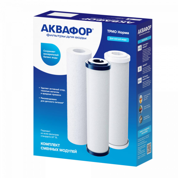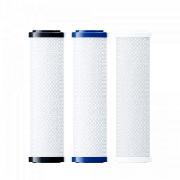 Комплект сменных модулей глубокой очистки. Оптимален для мягкой воды. В условиях жесткой воды он полностью выполняет функцию глубокой очистки от вредных примесей, однако не снижает минерализацию. Поэтому, если при кипячении на нагревательных элементах образуется белый налет, рекомендуем рассмотреть специализированный комплект с умягчающим модулем для глубокой очистки воды.