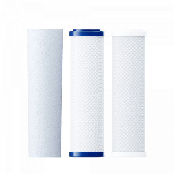 Комплект сменных модулей глубокой очистки. Оптимален для мягкой воды. В условиях жесткой воды он полностью выполняет функцию глубокой очистки от вредных примесей, однако не снижает минерализацию. Поэтому, если при кипячении на нагревательных элементах образуется белый налет, рекомендуем рассмотреть специализированный комплект с умягчающим модулем для глубокой очистки воды.