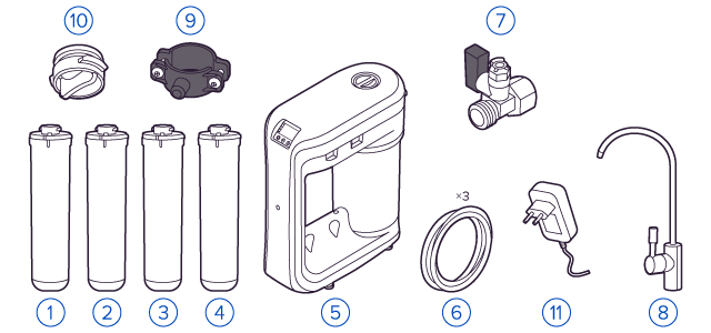 Обратноосмотические фильтры используются для абсолютной защиты от накипи, т.к. полностью устраняют соли жесткости из воды.даЧисло ступеней очисткиКартриджи последовательно очищают воду и от видимых примесей, и от растворенных. Первый картридж задерживает более крупные частицы, а каждый последующий - более мелкие. Чем больше ступеней - тем лучше фильтр очистит воду: поймает более мелкие видимые частицы ржавчины, песка и ила, успеет захватить из воды максимум растворенных примесей - хлора, нитратов, тяжелых металлов и других.4Накопительная емкостьОбычно нужна в фильтрах обратного осмоса. Глубокая фильтрация требует времени. Чтобы Вам не приходилось ждать, пока вода наберется в чайник или кастрюлю, почти во всех моделях используется накопительный бак для чистой воды или другая емкость. В стандартном фильтре обратного осмоса под мойку воды в баке достаточно для семьи из 5-6 человек.даФильтрующий модуль в комплектедаОтдельный крандаДавление в водопроводе не более, атмМаксимальное давление воды на входе в систему, при котором возможна стабильная работа фильтра.6,5Ширина, смОбратите внимание на габариты фильтра, и измерьте, сколько свободного пространства в предполагаемом месте установки.40,5Глубина, смОбратите внимание на габариты фильтра, и измерьте, сколько свободного пространства в предполагаемом месте установки.19,5Защита корпуса от гидроударовдаИсходная водаЖесткая вода – вода с избытком минеральных солей. От нее появляется накипь в чайнике, известковый налет на сантехнике и разводы на посуде. Мягкая вода – та, в которой мало минеральных солей. Нет накипи в чайнике и разводов на посуде. Фильтры для мутной воды и фильтры от ржавчины, как правило, имеют несколько стадий очистки и дополнительный полипропиленовый картридж. Он задерживает механические частицы ила, песка и ржавчины и защищает картриджи более глубокой очистки.любаяУстраняет мутностьМутность водопроводной воды может говорить о том, что в ней много мелких механических частиц. Важно, чтобы в фильтре был установлен дополнительные картридж механической предфильтрации (полипропиленовый) - он продлит жизнь остальным картриджам более тонкой очистки.даУстраняет ржавчину, бурый осадокЛюбой фильтр под мойку удалит из воды крупные и мелкие частицы ржавчины. Некоторые фильтры имеют повышенный ресурс по железу: они дольше служат в такой воде, поскольку лучше подходят для удаления из воды железа и механических частиц ржавчины.даЗащита от бактерийВсе проточные фильтры в той или иной степени защищают от бактерий. Например, добавление серебра препятствует их размножению. Это стандартная степень защиты. Если в семье есть дети, пожилые люди или аллергики, воду рекомендуется обеззараживать, то есть полностью удалять микроорганизмы. Повышенную защиту от бактерий дают фильтры с половолоконной мембраной. Это пучок трубок с порами размером 0,1 микрон (что в 1000 раз тоньше человеческого волоса) - бактерии и яйца паразитов “застревают”, как в “сите”. Полученную воду не придется кипятить и можно использовать для приготовления детского питания. Абсолютную защиту обеспечат фильтры обратного осмоса, которые не пропускают через обратноосмотическую мембрану ничего, кроме воды.абсолютнаяПодходит для детей или аллергиковВрачи-иммунологи советуют дополнительно очищать воду д