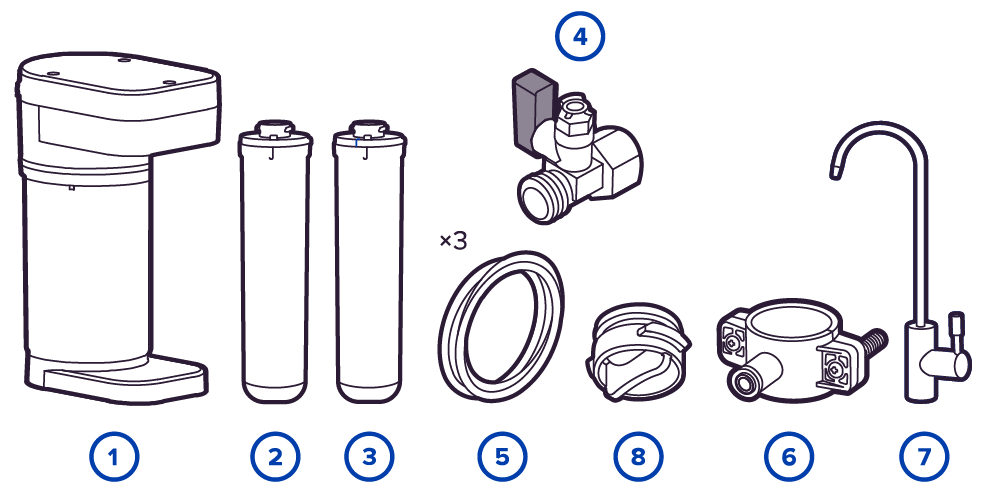 Система оснащена 5-литровым накопительным баком водо-водяного типа, что позволяет в два раза сократить занимаемое пространство под мойкой по сравнению с классическими обратноосмотическими системами с водовоздушными баками.