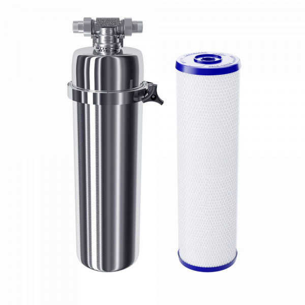 Фильтр для питьевой воды из нержавеющей стали с удобным креплением. Глубоко очищает всю воду в доме, не снижая напор в системе. Модуль сочетает сразу несколько современных технологий фильтрации: карбонблок с волокном АКВАЛЕН и гранулированные сорбционные материалы.