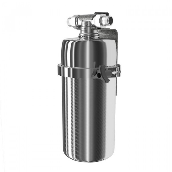 Модель оснащена быстросъемным креплением «американка», поэтому фильтр можно устанавливать в небольших нишах и труднодоступных местах. Нижний полукорпус изготовлен из нержавеющей стали марки AISI 316, особенно устойчивой к коррозии и высоким температурам.
